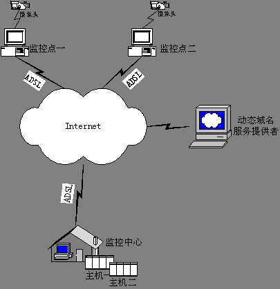原來基于固定IP地址的數(shù)字視頻網(wǎng)絡(luò)監(jiān)控系統(tǒng),幾乎可以直接使用這種模式。當(dāng)然,原來如果是預(yù)先配置遠程監(jiān)控點IP地址的,現(xiàn)在需要改變成預(yù)先配置遠程監(jiān)控點的Internet域名。編寫程序的時候只需要調(diào)用相應(yīng)API函數(shù),就可以獲得Internet域名對應(yīng)的IP地址。
